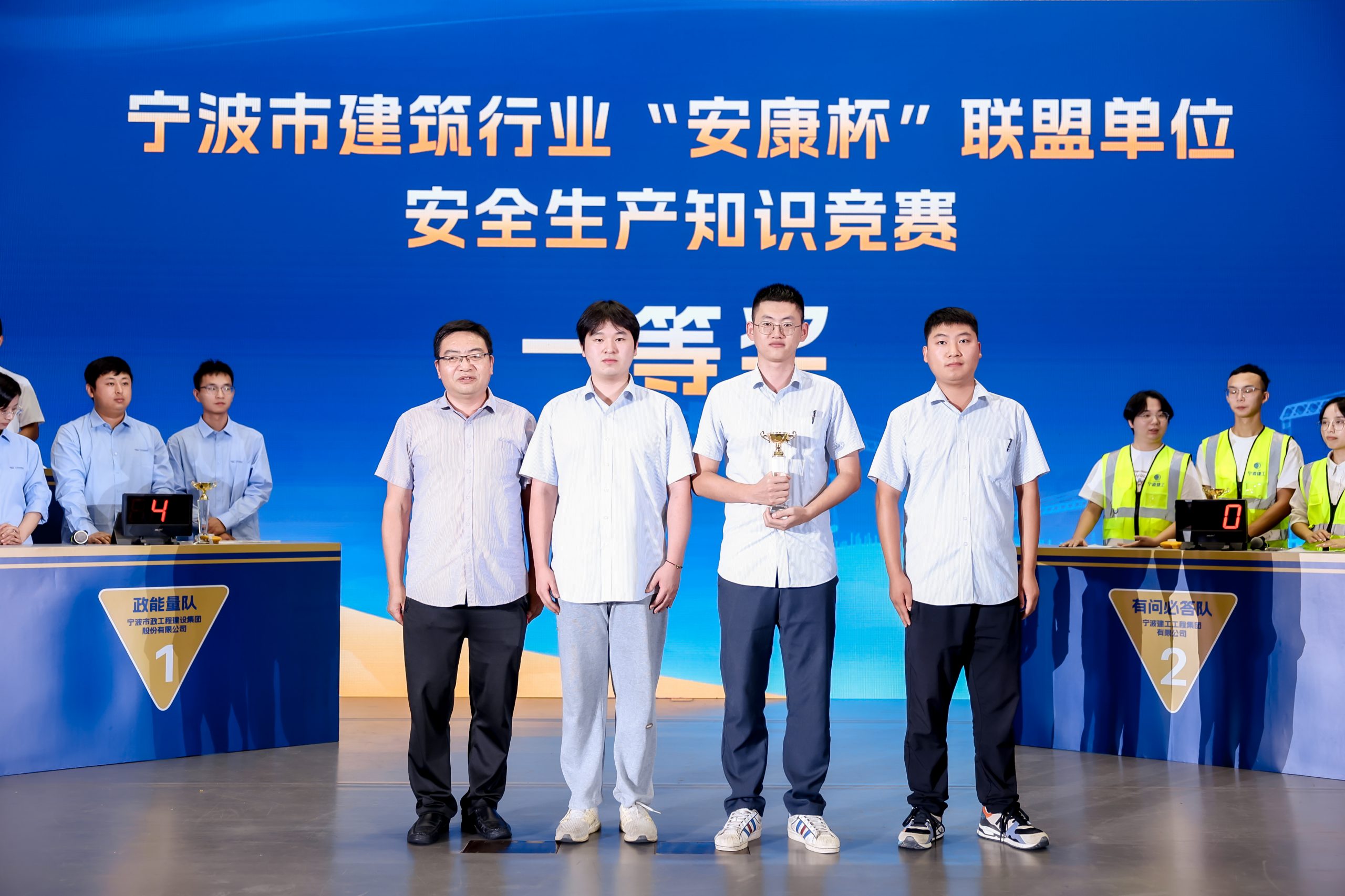 经过三轮的激烈角逐,最终由叶经店、李盛、程文博三位队员组成的宁波建设集团代表队脱颖而出,斩获一等奖。宁冶勘、中交水利、宁波建工工程集团荣获二等奖,住宅集团、宁波市政集团、中交三航、产城集团获三等奖。宁波市海员建设工会主席杨真照为获奖选手颁奖。