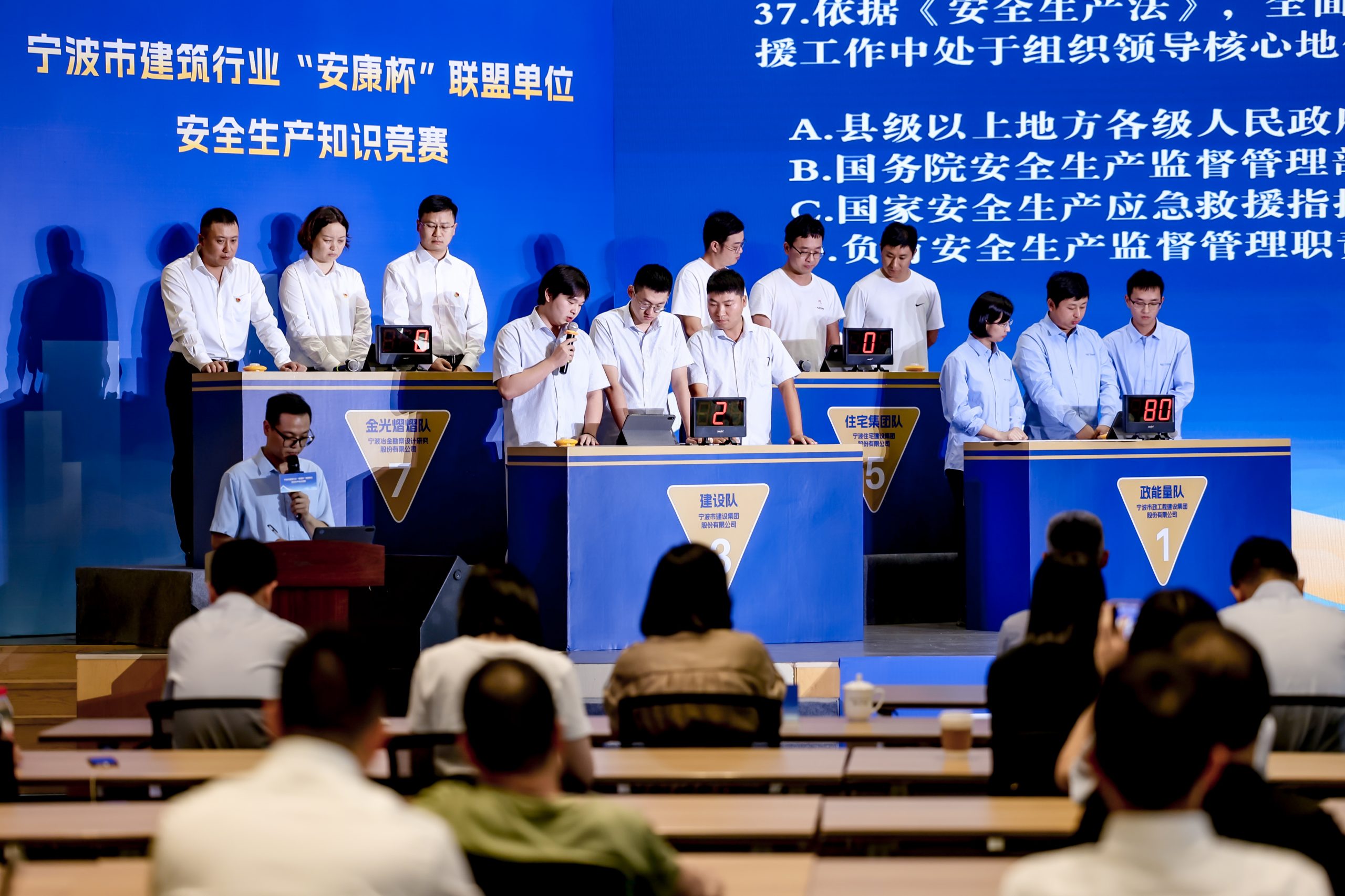参与此次竞赛的8支代表队由市建筑行业“安康杯”联盟单位组成,比赛围绕安全相关法规标准、安全生产应知应会、应急处置、党史知识等多个方面,设置有必答题、抢答题、挑战题三类题型,题目灵活,重点突出,全方位考察选手们的安全生产理论水平。