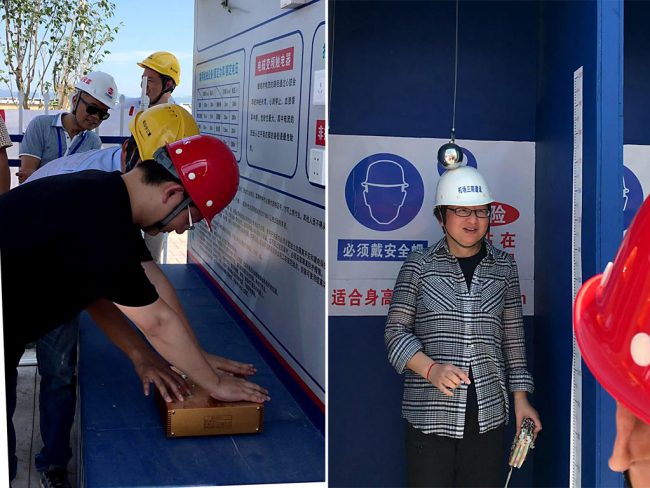 戴着安全帽受到意外撞击,会是什么感觉?如果不戴呢?洞口坠落的失重感是怎么样的?近日,我公司首个施工现场安全体验区,亮相宁波栎社机场扩建三期施工现场。体验区设有洞口坠落体验、平衡木体验、安全帽撞击体验、安全带使用体验等10余项体验设施。